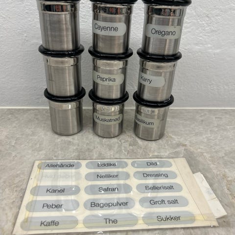Krydderilabels / krydderi labels / klistermærker. Kan gå i opvaskemaskine. Aldrig brugt. Sender gerne.