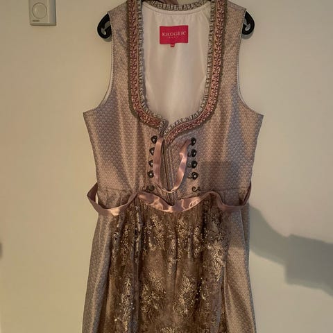 Dragt, Fra temashop, str. S, Lyseblå, Polyester, Ubrugt, Helt ny Dirndl kjole i lyseblå med glimmer. Rigtig f lot. Aldrig brugt, stadig med mærke på. Nypris 649kr.