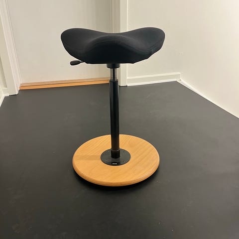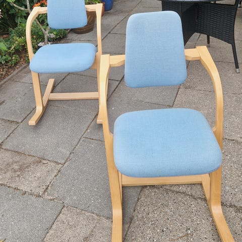 Gyngestol, STOKKE, Stokke Varier Variable stol. Grøn polstring med rød farveplet på sædet. Naturfarvet træstel. Kan afhentes i København