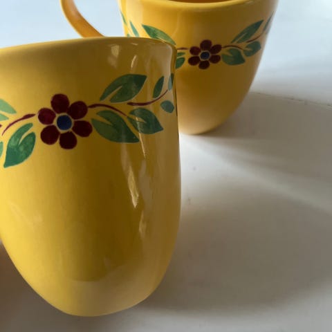 Andet, Kop og underkop, Christineholm Design Studio, Sød kop og underkop i varm gul bundfarve ( på foto ser det ud som om det er skjoldet, men det er det ikke)