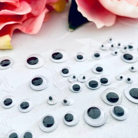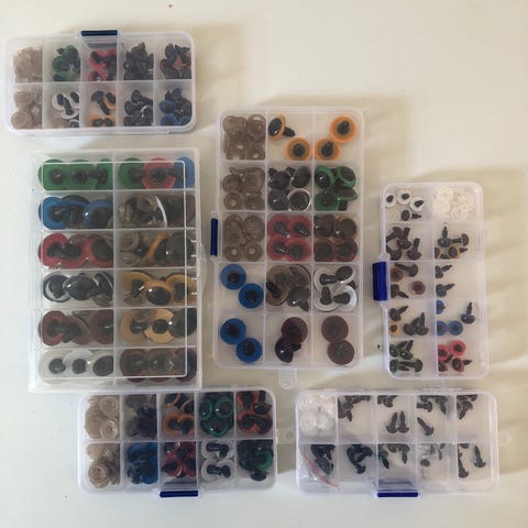 Over 700 stk rulleøjne i forskellige størrelser, farver og former.