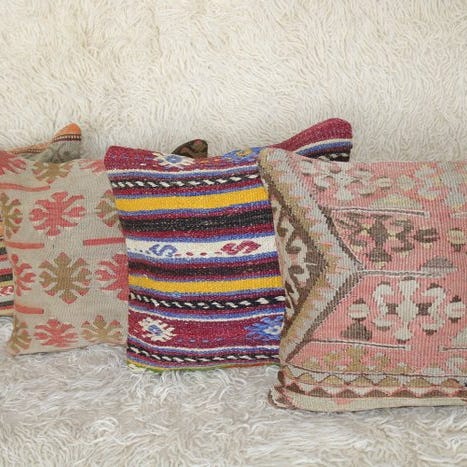 Har i alt 4 forskellige slags af de smukke, antikke usak puder 4x (40x40) kvadratiske. Alle betræk er helt håndlavede, håndstrikkede. Der er tykt stof på bagsiden af puden og skjult lynlås i midten. Lynlåsdelen er praktisk til at sætte den indvendige pude på.