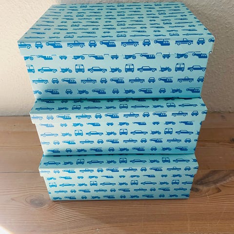 Kasser, 5 Kasser i alt til drengeværelset med dødningehoveder (den 5. kasse er ikke med på billedet)
