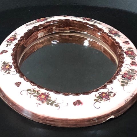 Vægspejl, b: 60 h: 60, Fantastisk fint vintage spejl - rundt - med dekorative muslingeskaller hele vejen rundt- bemalet med sølvfarve ( ikke af mig !) - har et par små nag på skaller - ses kun tæt på - smukt vintage spejl i flot stand. God tyngde . Sendes ikke !! Kan afhentes på adressen .