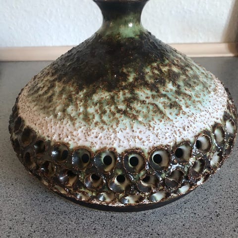 Kun er malingen øverst, hvor fatningen skal sidde, skallet lidt af. Hænger lampen højt, bemærker man det ikke og ellers kan den males. Se foto.