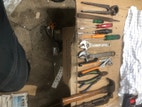 Nappetang, fil,5 skruetrækkere, 2 svensk nøgler, 2 bidetænger , 1 hammer og 1 lille rørtang.
