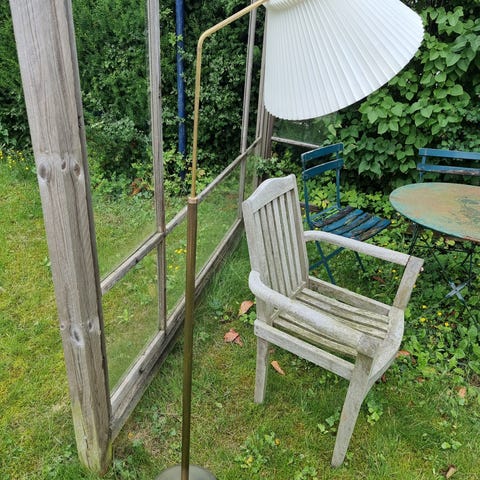 Standerlampe, Flot retro standerlampe med plisse skærm. Har en lille fejl på foden - ellers i meget god stand