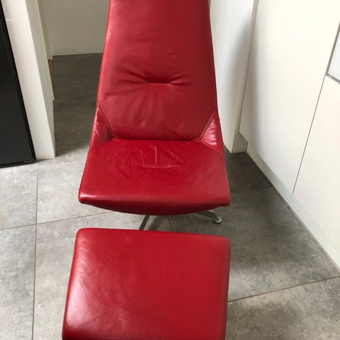 Drejestol, læder, Ukendt, Læderstol med tilhørende fodskammel.