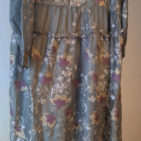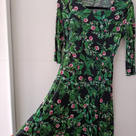 Kjole med blomsterprint grøn/orange str. L dame