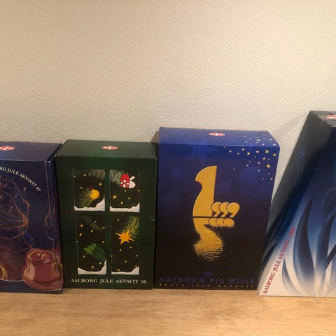 Vaser og pampas, Ålborg jule akvavit, 2 x flotte juleakvavit - som er perfekte at bruge som vaser. De er i perfekt stand, og er self rengjort.