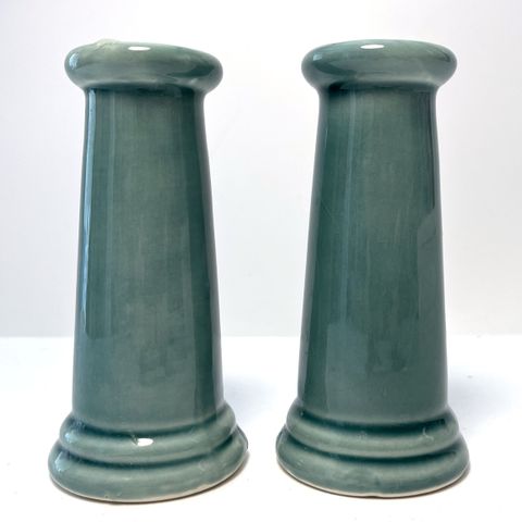 De måler ca. 34 cm i højden og passer til fyrfadslys og foden er ca. 15,5 cm i diameter.