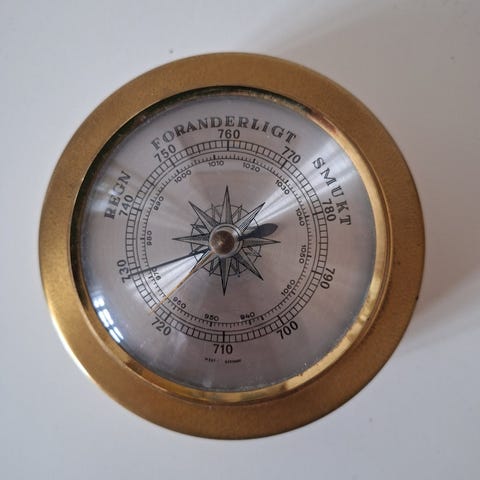 Barometer, ?, Maritimt Engelsk barometer. 14 cm i diameter. Kan ikke se fabrikant. Det virker.