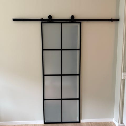 Skydedør, glas, b: 102 h: 231, Dobbelt skydelåge/skydedør i glas og alu. Sælges med skinner mm. Rigtig fin stand. Sælges fordi vi bygger om. Ikea-model