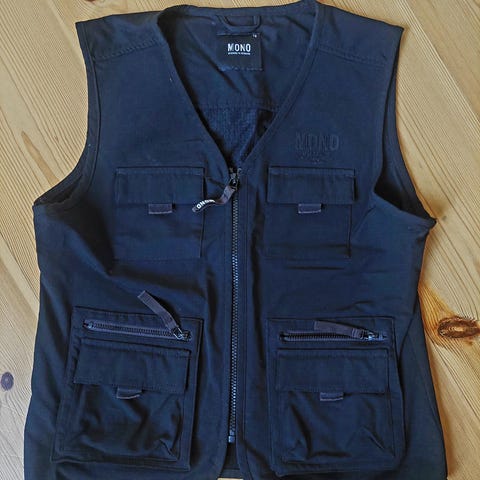 Vest, Med nitter, Mono, str. 122, Pæn og velholdt men mangler desværre 2 nitter, snebilleder 2.. ikke noget der ses som sådan da den ikk lukkes. Ellers er den som ny. Fra dyre og røgfri hjem og kan sendes