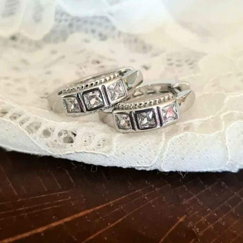 Øreringe, forsølvet, Zirkonia hjerte øreringe