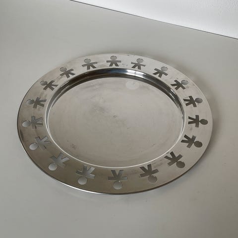 Bakke / fad, Alessi Girotondo, Smukt fad i højglanspoleret rustfrit stål. Designet af King-Kong for Alessi. Nærmest som nyt. Diameter 40 cm.