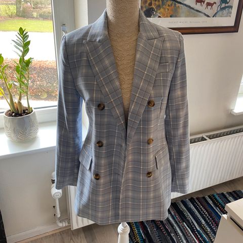 Blazer, str. 38, Gina Tricot, Rød orange tomat , Polyester viscose, Ubrugt, Pæn blazer med flot dramatisk effekt oppe ved skulderen. Syntes den kan passe flere str. står 36 men jeg bruger selv 40 og kan nemt knappe den