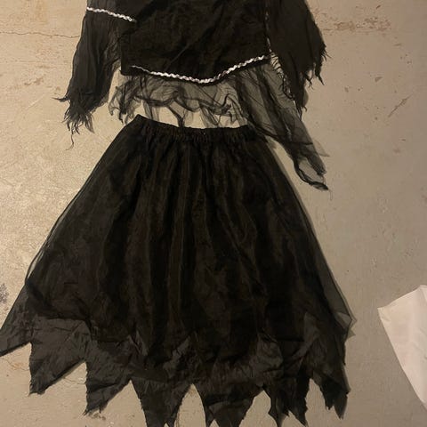 Voodoo-kvinde kostume, Heksedoktor/ voodoo kvinde: 2 delt kostume i str L. Til sættet medfølger hat og mørk brun paryk.