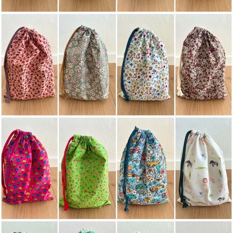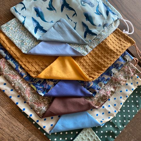 Andet, Frugtpose/stofposer, Håndlavet med kærlighed, Fine håndlavede frugtposer til opbevaring af snacks, brød mm på farten.