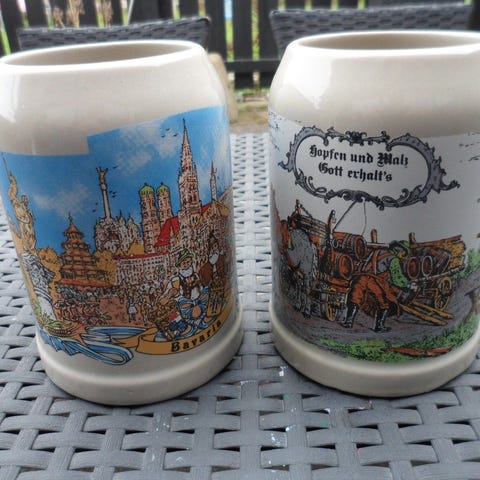 Gl. ½L. keramik Krus Med Låg, Tysk Øl Krus