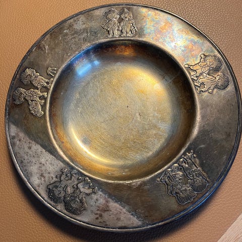 BørneTallerken, Antik Porcelæn og metal, 100 år gl.