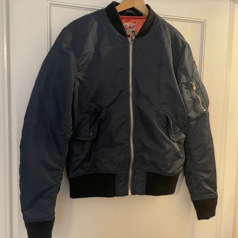 Jakke, str. L, Schott, Mørkeblå, 100% NYLON, Næsten som ny, Sælger den her Schott OFFICIAL AWARD PRODUCT by AC AMERICA COLLEGE Bomber