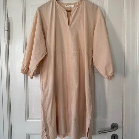 Gul poplin kjole i str 34 med tilhørende bindebælte og med lille gestuz logo og puf ærmer.