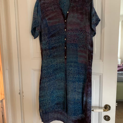 Længde ca 93 cm målt fra nakkekant og ned - lidt kortere foran - og en anelse længere fra skulderkant og ned.