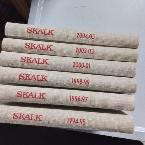 Skalk årgang 1986 - 1991, emne: historie og samfund, Årgang (1986 SOLGT), 1987 og 1988 er indbunden med 6 hæfter + en særudgave. Pris pr. stk. 60 kr.