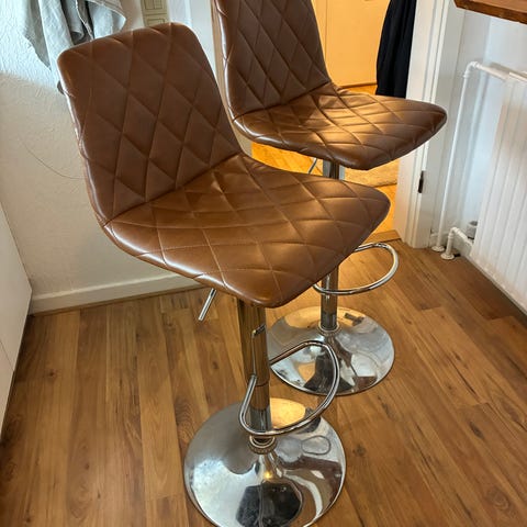 Barstol, 4 barstole med blåt betræk (lidt falmede + trænger til let rens) købt i 2018 i Ilva