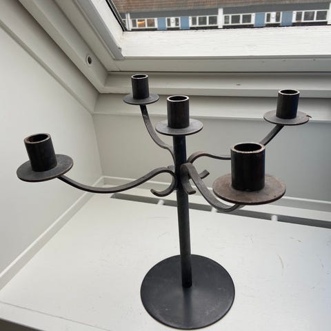 3 armet lysestage, 3 armet støbejerns lysestage i råhvid. 1 stk 95kr..