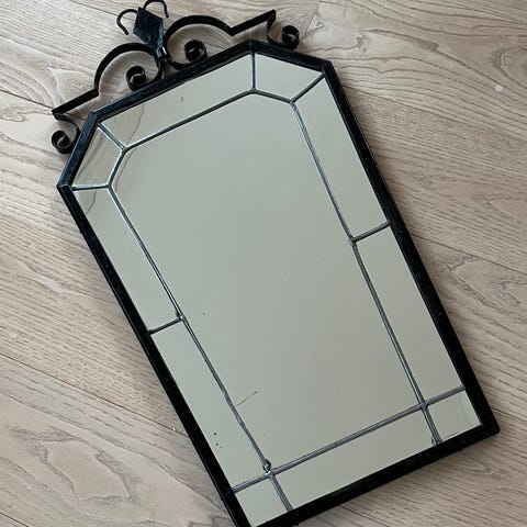Anden type spejl, b: 30 h: 46, Spejl med stage i smedejern.