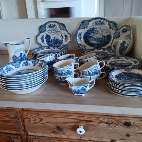 Fajance, Kopper ,underkop og desserttallerken, Old britain Castle, 5 sæt helt perfekte d =9cm
