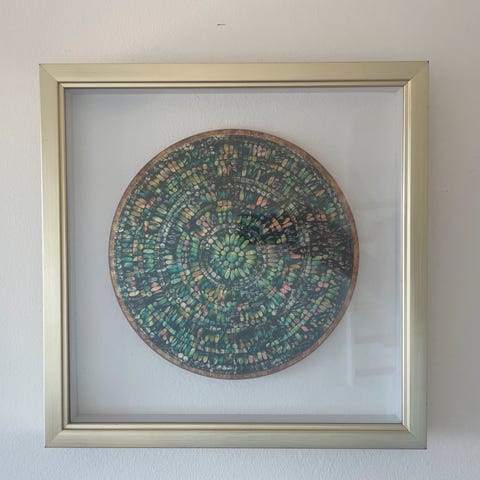 Ramme med mosaik og billede af fugle , motiv: Fugle og blomster