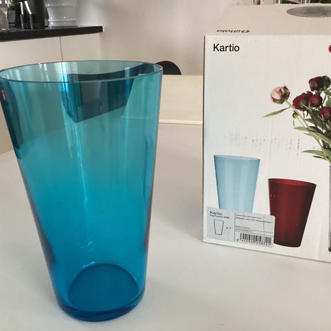Tror det er er iittala kartio light blue vase af designeren Kaj Franck.