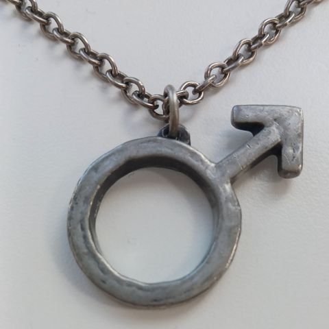Halskæde, tin, MANDE-TEGN, Mandetegn i 46 cm lang kæde