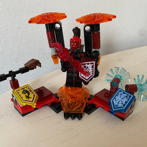 Lego Nexo Knights, 703338 + Kid Clay, Ultimate General Magmar (nogle brikker er udskiftet) og Kid Clay samt ekstra skjolde.