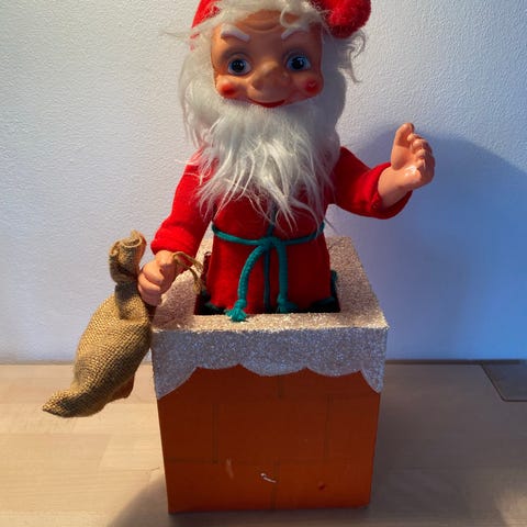 Julemand på vej ned i skorsten, Julemand i skorsten med julestok