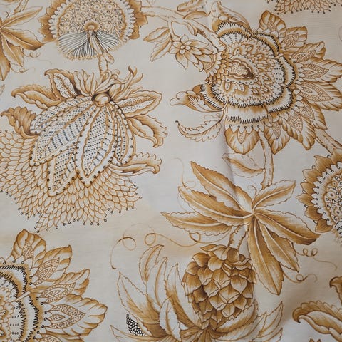Mønsteret tillader lys at trænge igennem, hvilket skaber en lys og luftig atmosfære i rummet. Velegnet til sommerhuset, stuer, soveværelse eller andre opholdsrum, hvor der ønskes en blød belysning.Stoffet bliver helt hvidt efter vask.