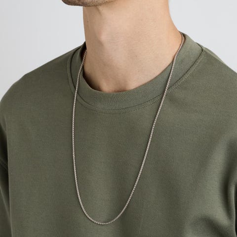 Halskæde, guld, Hvidguld, Leddelt halskæde af 14 k. guld og hvidguld med græsk mønster monteret med sikkerhedskæde af 18 kt. hvidguld. L. 50 cm. Vægt 29 g.