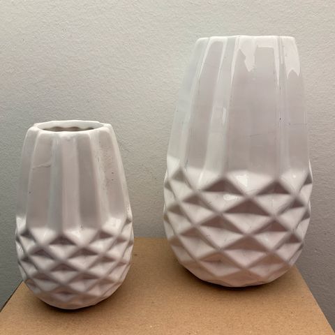 Kan sendes. Vase, 3 hvide vaser, Forskelligt mønster. Samlet pris. Mobile pay.