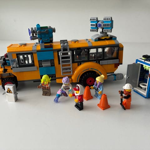Man kan download appen LEGO® Hidden Side™, og ret din telefon mod legesættet Paranormal fangstbus 3000 for at bringe dette skolebuslegesæt til børn til live. Bevæg telefonen rundt for at opdage et konstant skiftende miljø, der skjuler sig omkring modellen.