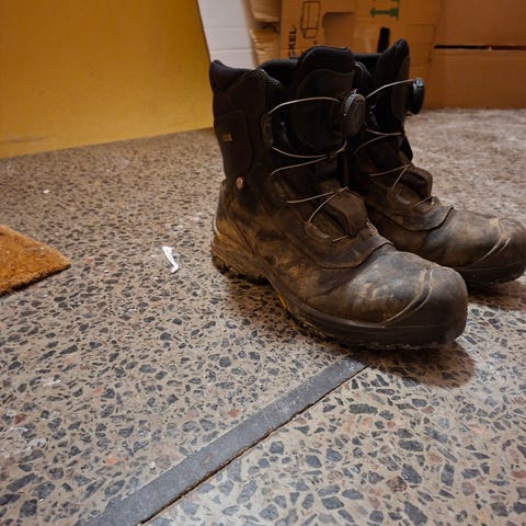 Blåklæder, Meget lidt brugte arbejdsstøvler sælges, der er lidt grøn maling på dem, men ellers er de som nye, det har jeg forsøgt at vise med det billede som er taget af sålen.