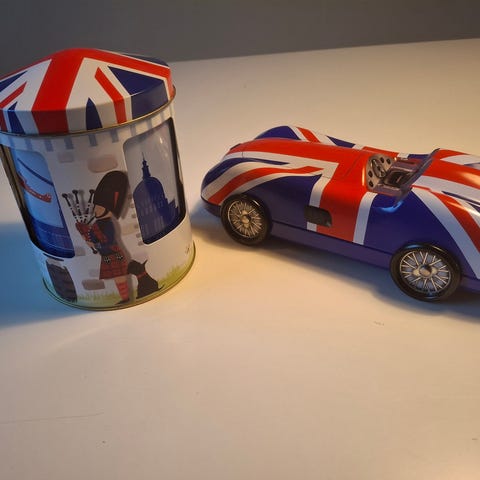 Blandet legetøj, Shell olietønder, Shell, Plastik olietønder med Shell etikette.