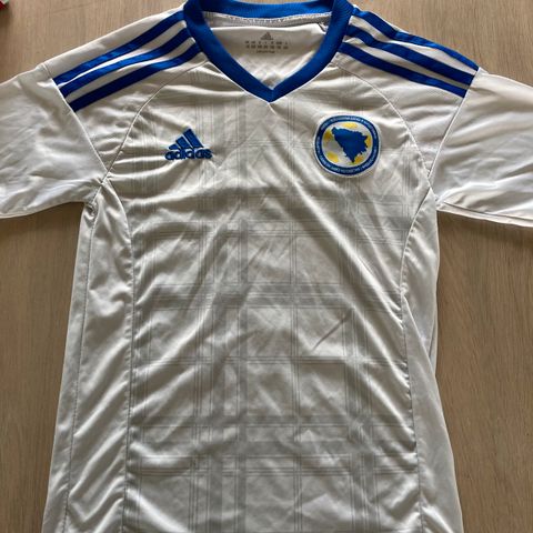 Fodboldtrøje, Bosnien 2018/2019, str. Medium, Bosnisk landsholdstrøje fra 2018/2019 med #11 Edin Dzeko på ryggen. Stand: Har enkelte pulls og slid på tryk. Se billeder.