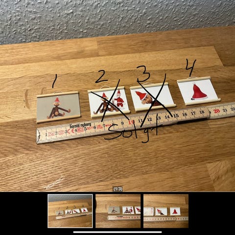 Dukkehus-møbler, Juletid, Fine juleplakater/ ophæng. Med søde nisser til dukkehuset eller nissebo sælges pris 10 kr PR STK jeg sender køber betaler Porto