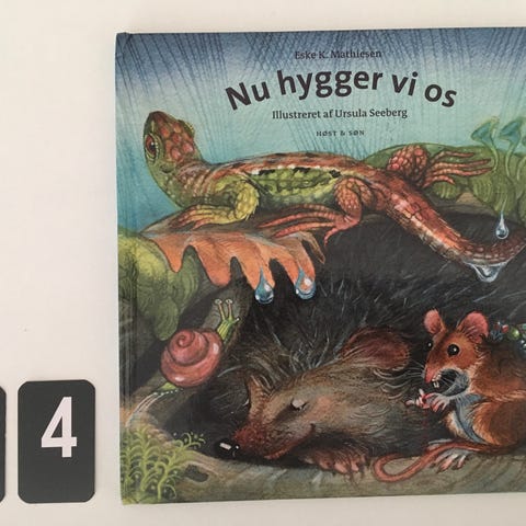 Billedbog. Det regner og musen, fluen og firbenet finder en lille tør hule, hvor de kan sidde i ly. Men så kommer der pludselig et stort pindsvin med stikkende pigge ind til dem.