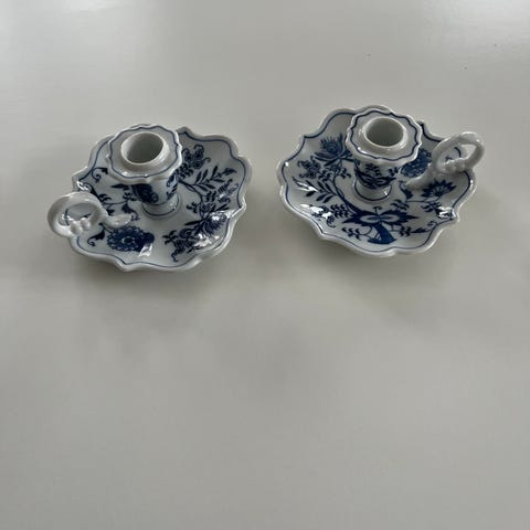 Porcelæn, Lysestager, Blue Danube, 2 vintage Blue Danube kammerlysestager af porcelæn.