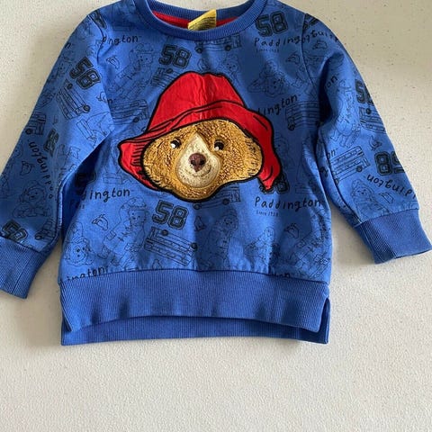 Strik sweater, Paddington, str. 110, Fin strik i bomuld med Paddington :) Str 110/ 5-6 år.