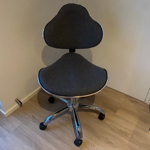 Juniorstol, ALRIK, Meget let kontorstol til børn fra Ikea med hæve- sænke funktion på hjul. Med plastic sæde og ryglæn, så den er nem at rengøre. Brugt fin stand. H: 39/53 cm. Fra ryge- og dyrefrit hjem.